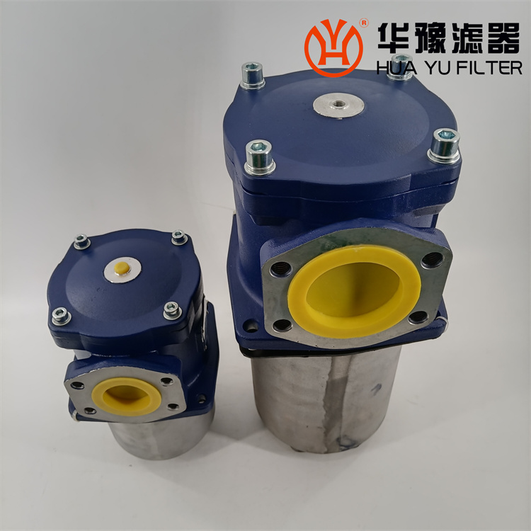 該過濾器的濾芯采用化纖過濾材質(zhì),具有過濾精度高,通油能力大,初始壓力損失小,納污量大等優(yōu)點(diǎn),并裝有壓差發(fā)訊器及旁通閥。當(dāng)濾芯堵塞到進(jìn)出油口壓差為0.35MPa時,便發(fā)出開關(guān)信號,此時應(yīng)更換濾芯。如果不能馬上停機(jī)或無人來更換濾芯,裝在濾芯上部的旁通閥會自動開啟,以保護(hù)系統(tǒng)。