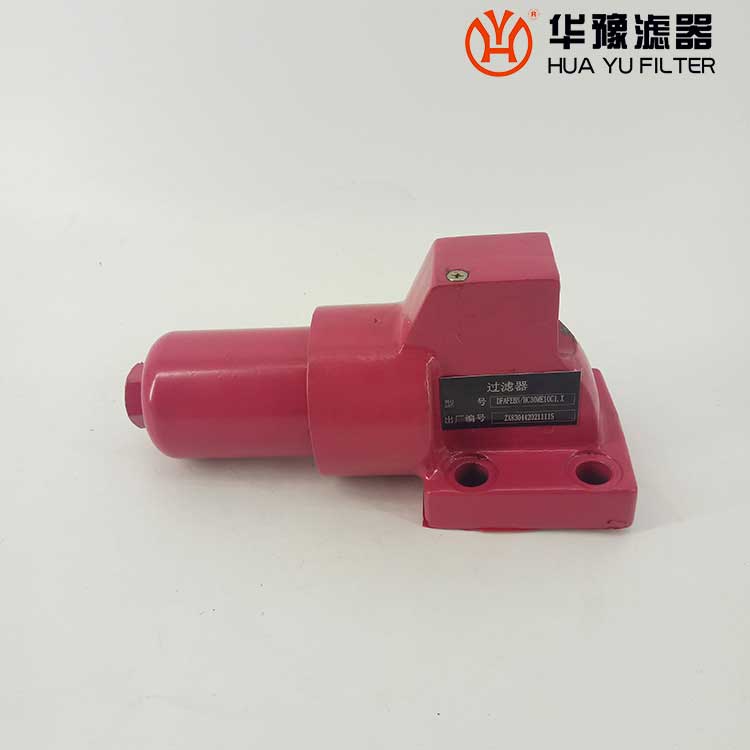 壓力管路過濾器安裝在液壓系統(tǒng)的壓力管路上,用以濾除液壓油中混入的機(jī)械雜質(zhì)和液壓油本身化學(xué)變化所產(chǎn)生的膠質(zhì)、瀝清質(zhì)、炭渣質(zhì)等,從而防止閥芯卡死、節(jié)流小孔縫隙和阻尼孔的堵塞以及液壓元件過快磨損等故障的發(fā)生。該過濾器設(shè)有壓差發(fā)訊裝置,當(dāng)濾芯污染堵塞到進(jìn)出油口壓差為0.35Mpa時(shí),即發(fā)出開關(guān)信號(hào),此時(shí)更換濾芯,以達(dá)到保護(hù)系統(tǒng)安全的目的。