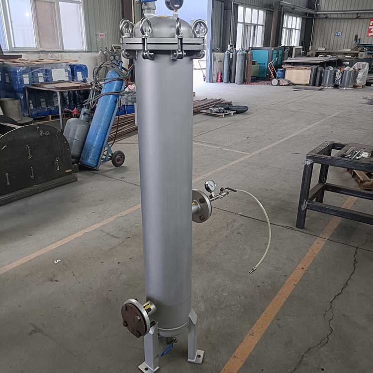 精密過濾裝置(也稱作保安過濾器)大都采用不銹鋼做外殼,內(nèi)部裝過濾濾芯(例如PP棉),主要用在多介質(zhì)預(yù)處理過濾之后,反滲透、超濾等膜過濾設(shè)備之前。用來濾除經(jīng)多介質(zhì)過濾后的